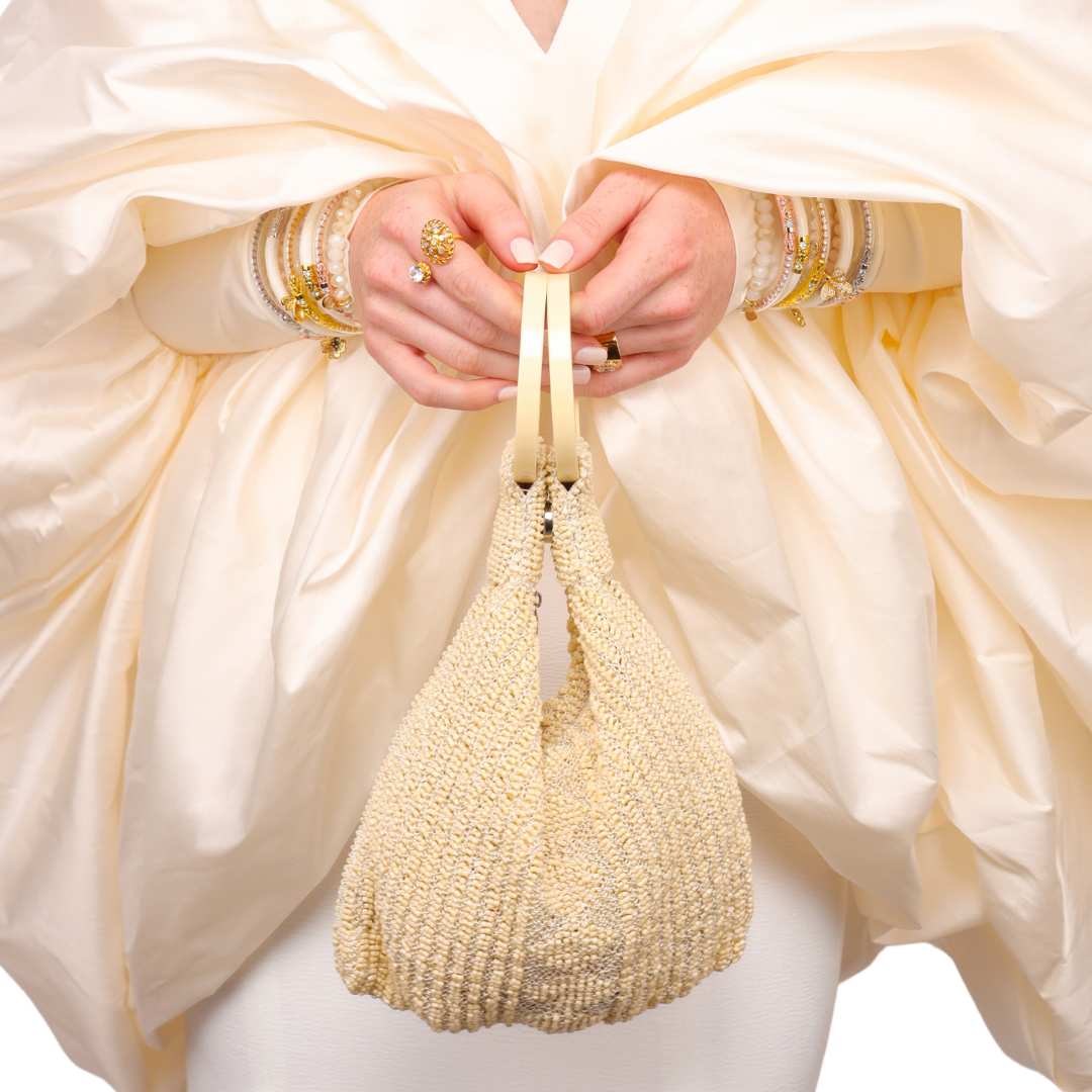 Chaque perle est cousue à la main pour créer une texture complexe et étonnante qui demande de l'attention.