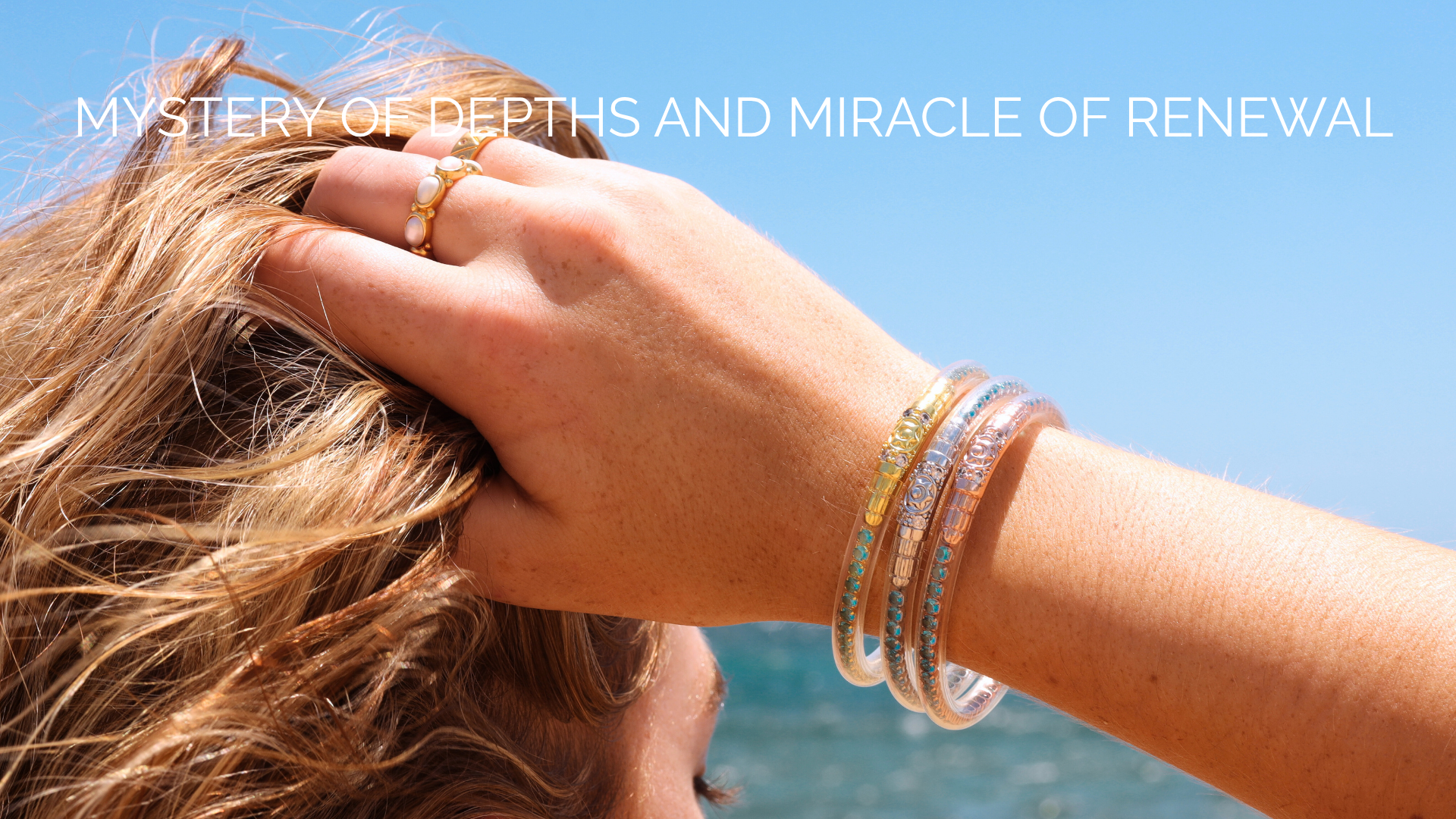 I braccialetti Aqua Three Queens All Weather sono un abbraccio rinfrescante di luce, chiarezza e bellezza fluida. Nel tubo trasparente più traslucido risiedono cristalli aqua radiosi—ognuno cattura l'essenza della schiuma marina illuminata dal sole e delle acque oceaniche cristalline. Questi braccialetti scintillano come onde in movimento, offrendo una presenza fresca e calmante al tuo polso.
