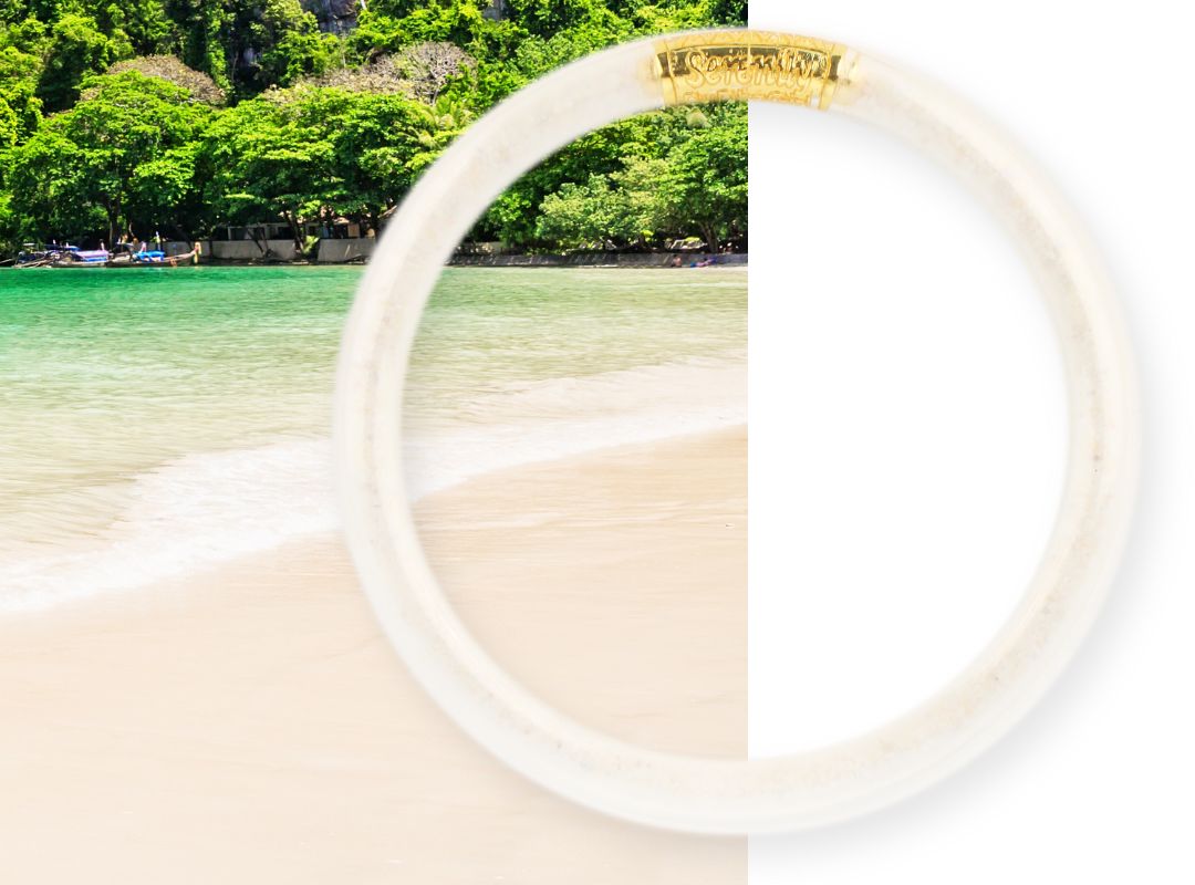 Inspired by sand from the breathtaking and tranquil island of Phuket, this bangle serves as a reminder of serene shores and endless horizons. Wear it to carry the calming energy of the beach wherever you go, grounding you in moments of chaos and offering a sense of peace and tranquility amidst the hustle of daily life.