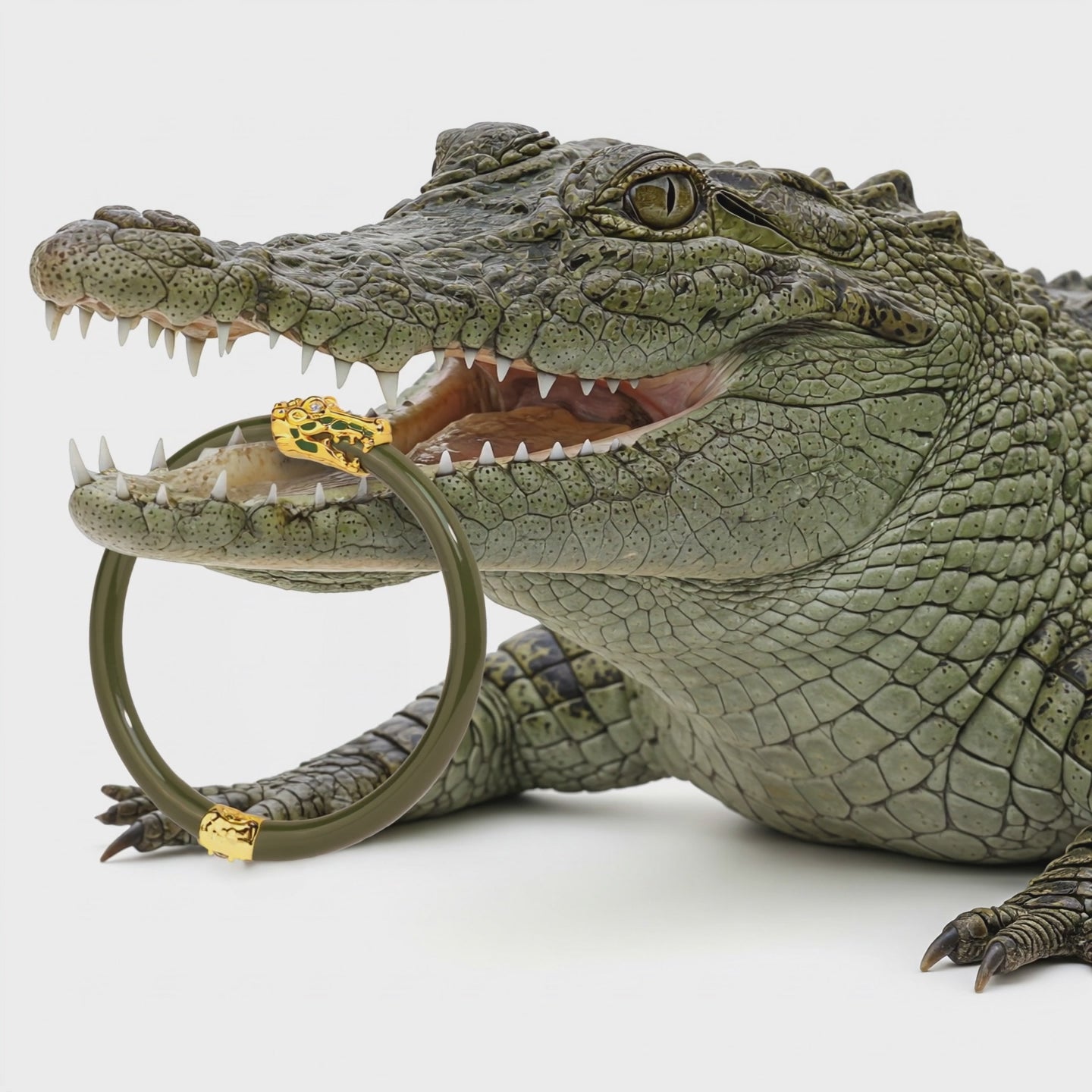 The head, adorned with shimmering clear crystals and hand-finished with lustrous jade enamel, captures the crocodile’s timeless elegance and primal energy. A perfect addition to a refined wardrobe, this bangle blends natural beauty and expert craftsmanship to create a piece as powerful and adaptable as the creature it honors.